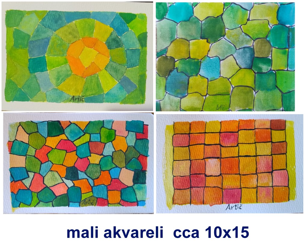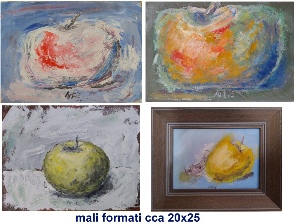 Prikazane slike so nastajale ob različnih priložnostih, za tematske razstave, po trenutni inspiraciji, za sprostitev z nekaj potezami čopiča in podobno.