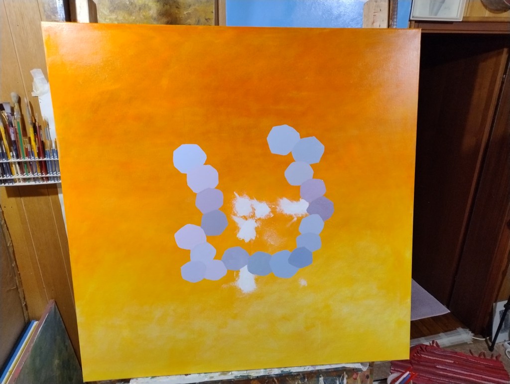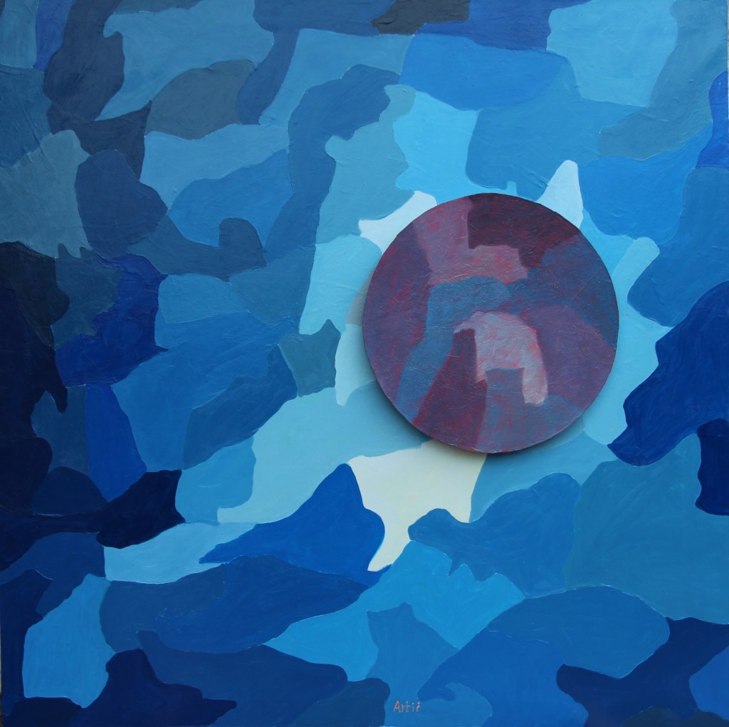V modrem med zvezde, (cikel Barvni kompromis), 100×100, olje, 2025