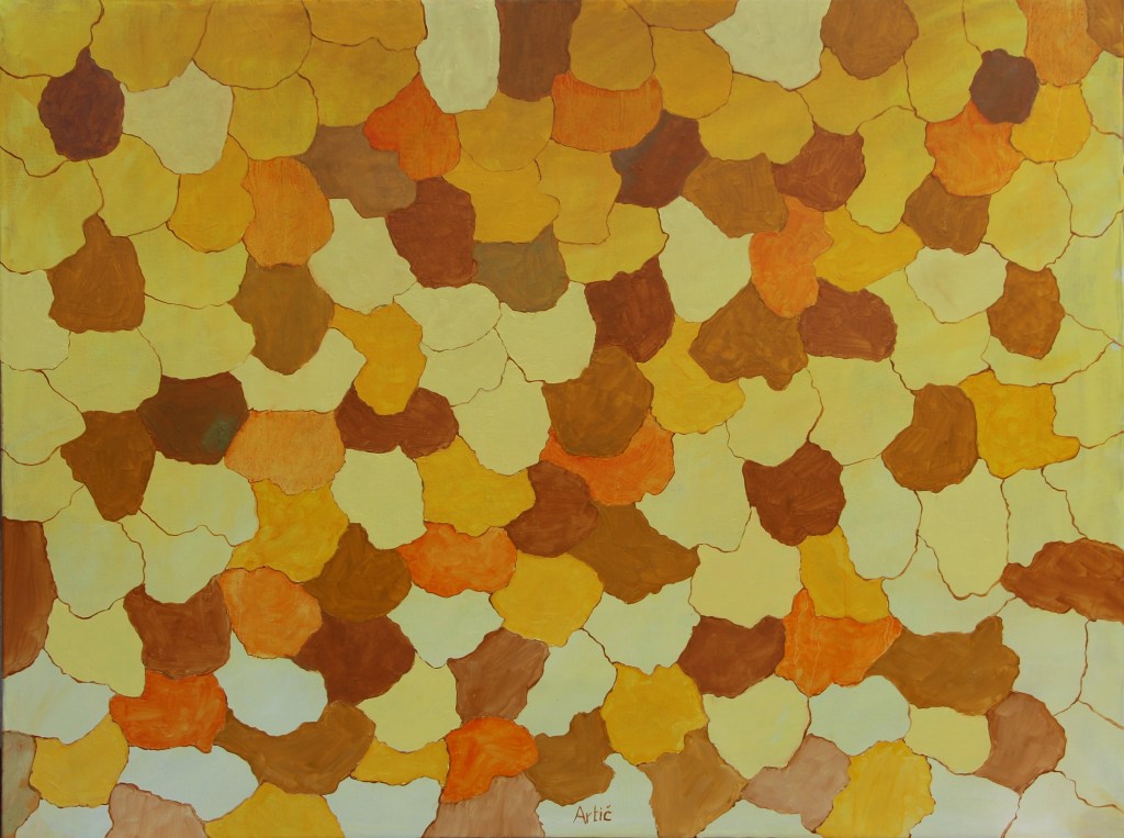 V tej seriji se ukvarjam z odnosi med barvnimi polji, s katerimi sestavljam in zapolnjujem likovni temeljnik. Uporabljam oljne barve, nekatere slike kombiniram z dvojnimi platni, na nekaj platnih sem ustvaril strukturo s pomočjo lepila in s posipavanjem izbranega materiala. Uporabljam različne formate platen. Na njih ustvarjam amorfne oblike barvnih polj, ki se razlikujejo po obliki in barvi.