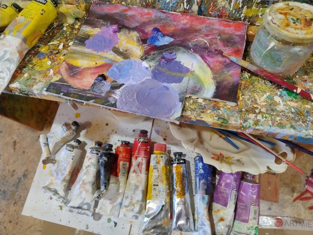 Umetnikov svet (cikel Barvni kompromis), 70×80, olje, 2024