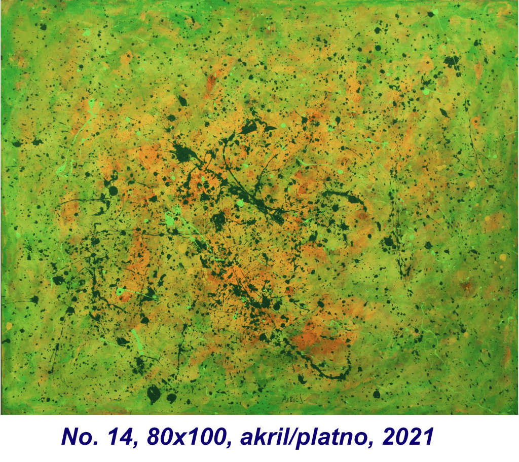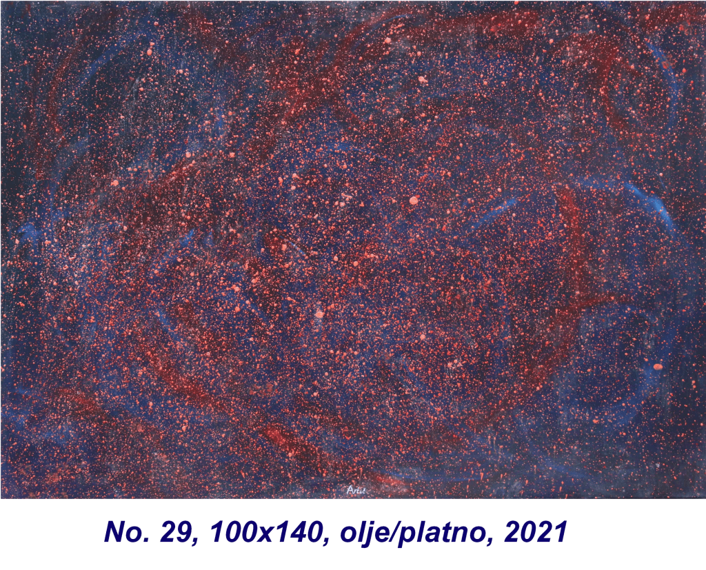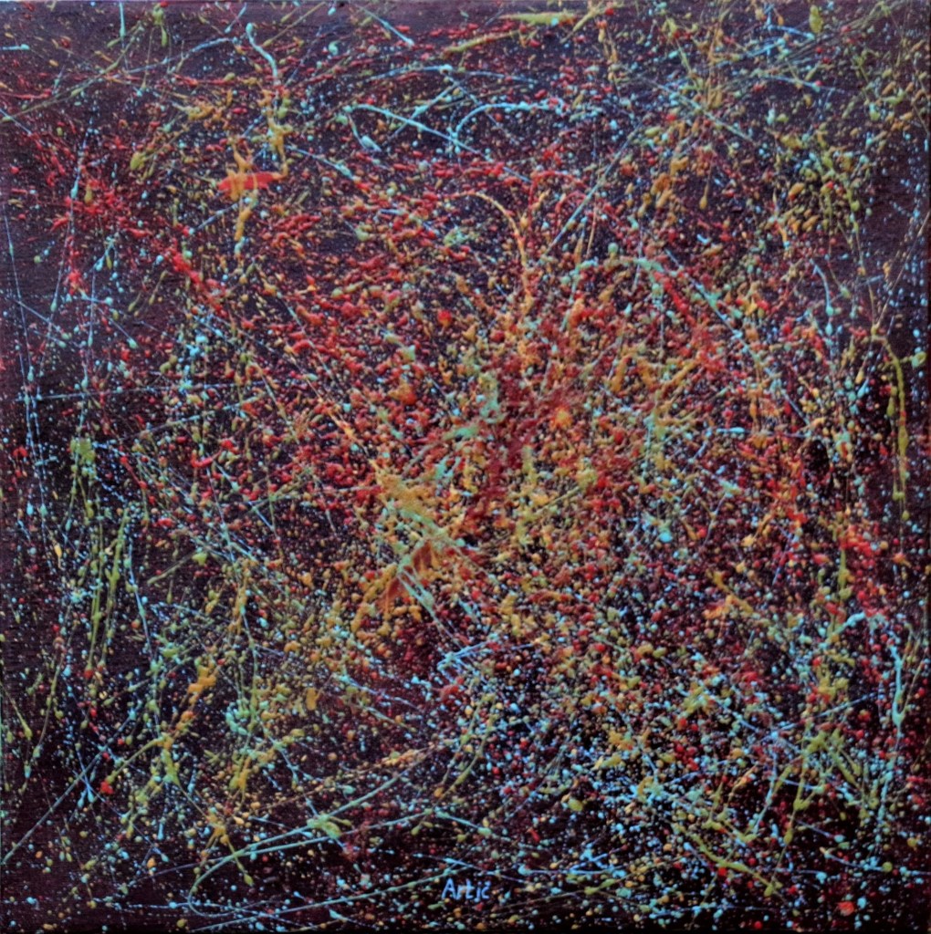 Avtorjeva evolucija pa je v najnovejšem obdobju doživela korenite spremembe, tako vsebinske kot likovno-formalne in tehnično-izvedbene. Slikar se je od tuzemskih sprehodov in ustvarjalnih poklonov svojemu življenjskemu prostoru odpravil na potovanje daleč stran, v vsemirje. Svoj pogled je dvignil v kozmična prostranstva, v prostor, ki je tudi duhovni. Slikovno ravnino spreminja v neskončen nebesni svod, na katerega vpenja nešteto drobnih barvnih nanosov. Slikarska akcija je odločna, živahna, igriva, a pravila nanašanja so v avtorjevi domeni, pod njegovim nadzorom. Temeljno vlogo imajo barve, ki zaživijo v vsej svoji moči in intenziteti. S tovrstnimi abstraktnimi kompozicijami je Ernest Artič vstopil v sfere abstraktnega ekspresionizma. Slikovno polje je postalo prizorišče pravega barvnega poka, ki ima na vsaki sliki skrbno izbran barvni koncept ter se razpira v komplementarnem spektru. Nanosi barv so karakterno raznoliki in doživljajo variacije. Barva, ki kane na podlago, je včasih povsem avtonomen del celote. Lahko se razprši v ubranem ritmu, enkrat bolj, drugič manj zgoščeno, v nekaterih rešitvah pa se nanosi sintetizirajo v prave konglomerate. Nekatere kapljice so oblikovno jasne, druge učinkujejo bolj mehko, tašistično (iz. fr. tache »madež, lisa«), prisotni pa so tudi megličasti nanosi. Včasih barvna snovnost pušča sled, v kateri se kapljice zvezno povežejo in postanejo sorodne linijskemu zapisu. Zaradi svoje likvidnosti in drugih kemijskih ter fizikalnih zakonitosti, barve med seboj različno reagirajo in nastale likovne vrednosti dopolnjujejo slikarjevo ustvarjalno hotenje. Nanosi se namreč oblikovno, barvno in tonsko združujejo, povezujejo, stapljajo ali mestoma celo konfrontirajo. Iz njih se oblikujejo pravi vzorci, ki so dinamični, vendar vsakokrat premorejo svoj ubran ritem.