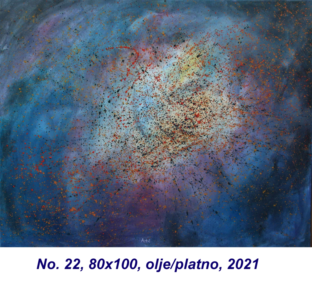 Slike odlikuje likovna energija, ki je prisotna tako v barvah in njihovi sevnosti kot v karakterju nanosov. Čeprav nas naslov razstave in asociacije vodijo v vesolje, pa so doživljanja teh barvitih, ekspresivno izživetih, abstraktnih slik lahko povsem raznolika. V delih živi tako makro kot mikro podoba sveta, in še marsikaj drugega.Tako je posamezniku dana popolna svoboda gibanja in sprejemanja slikovnih svetov. Barve pa ostajajo dražestno vabilo, da stopimo vanje. Najprej slikar, nato gledalec. Vasilij Kandinski, začetnik abstraktnega slikarstva, pravi, da imajo barve, tako kot zvok v glasbi, najbolj neposreden dostop do duše. Tudi za slikarja Ernesta Artiča niso le snov ustvarjanja, izražanja, ampak je nanje emotivno navezan in z njimi povezan. Njegove zaveznice so, zaupnice, sogovornice, nepogrešljive spremljevalke na ustvarjalnem potovanju. V tem ciklu pa je njihova vloga še posebej kompleksna in manifestativna. To je avtorjev poklon barvi in njeni magični moči.