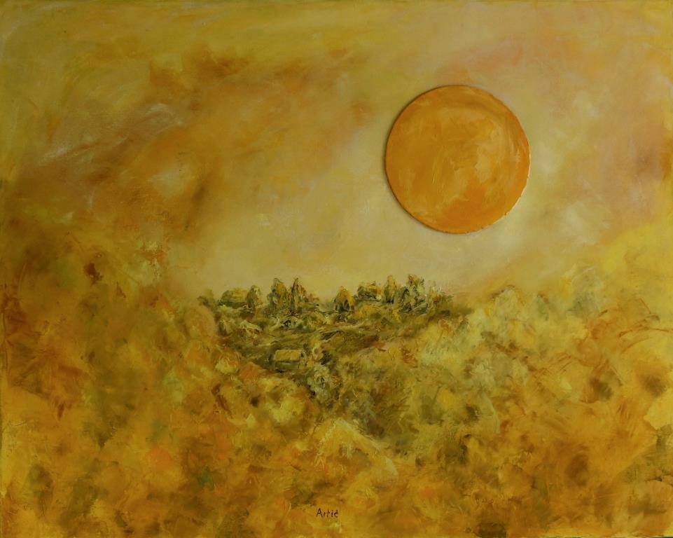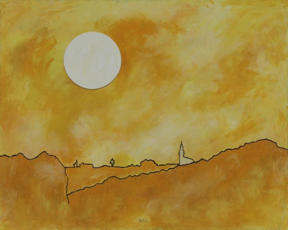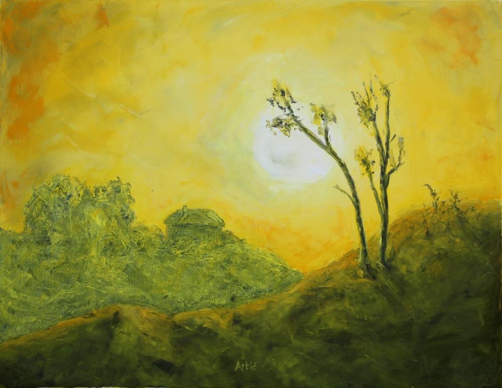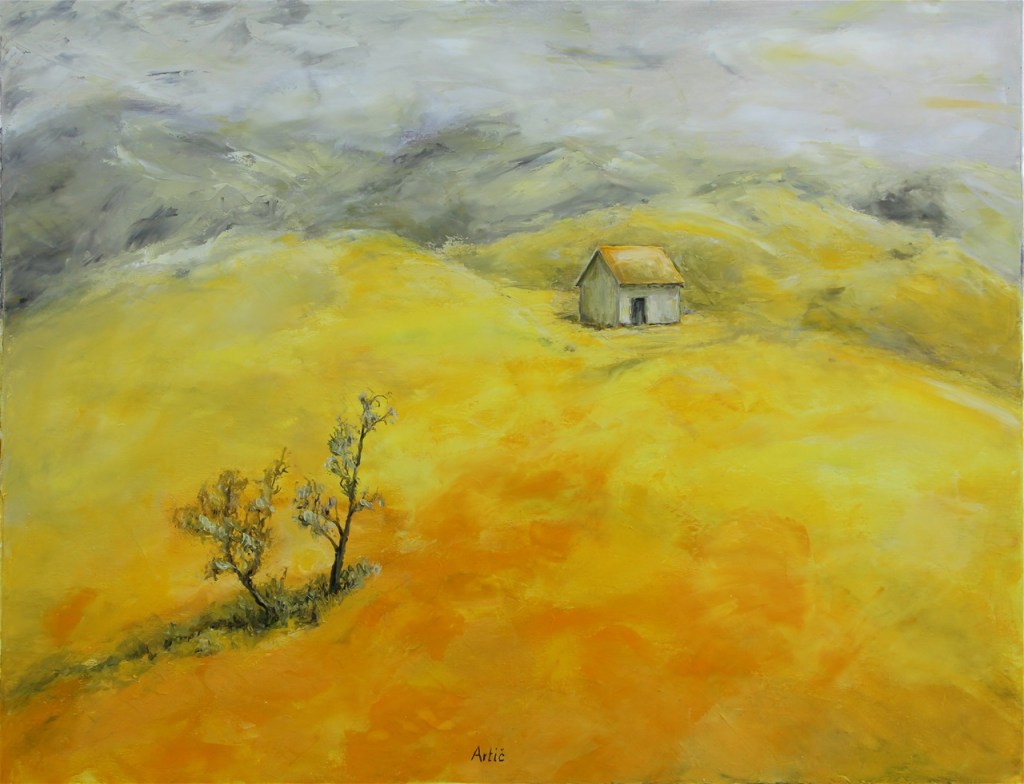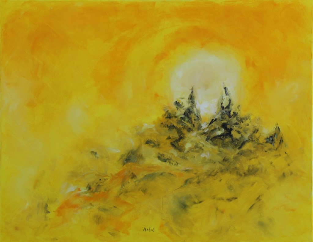 Cikel slik, rumena serija, kot sem jo poimenoval, sem ustvarjal skoraj tri leta. Seveda sem vmes naslikal slike za trenutne potrebe, mogoče razstave,… Uporabljal sem nekaj odtenkov rumene barve, ki sem jih svetlil z belo in temnil s črno. Pri manjšem številu slik sem dodal še modro ali oranžno.